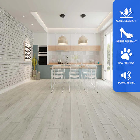 This flooring is ideal for living rooms, kitchens, basements, and commercial spaces.