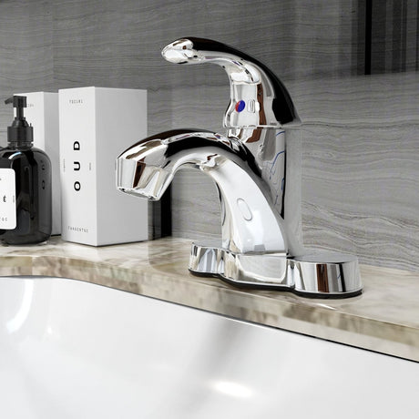 4 In. 2-Hole Single Handle Bathroom Sink Faucet With Plastic Handle in chrome Finish