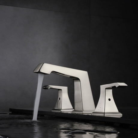 • 8" Widespread Bathroom Faucet, Brushed Nickel - BUILDMYPLACE