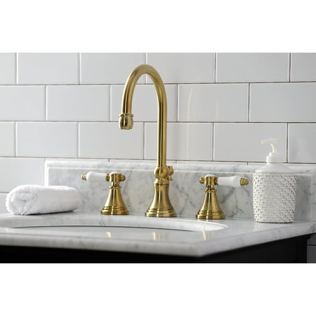 • Heirloom Widespread Bathroom Faucet With Brass Pop Up