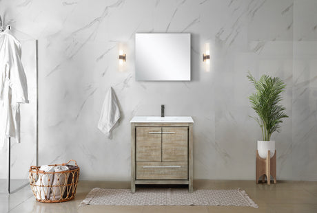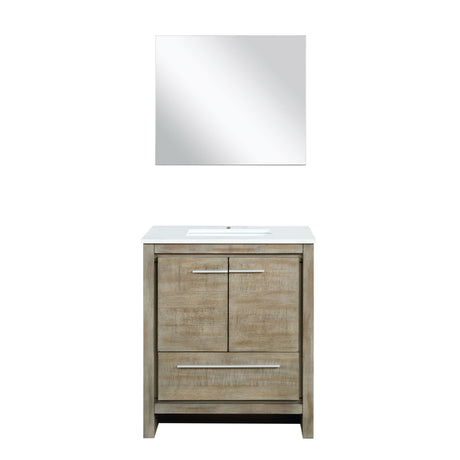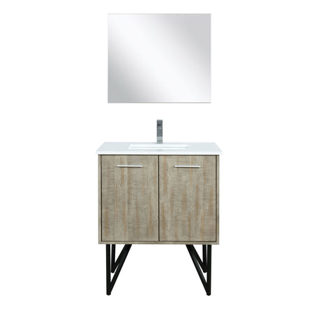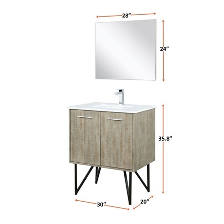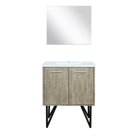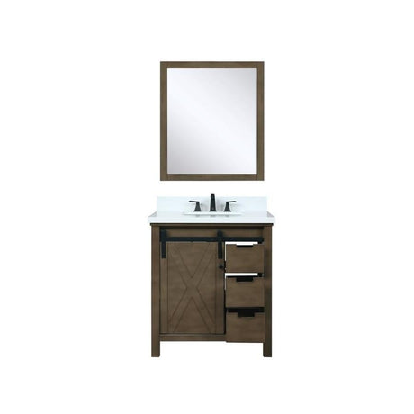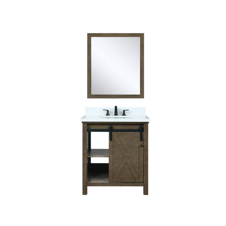 Marsyas 30" Rustic Brown Single Vanity, White Quartz Top, White Square Sink and 28" Mirror w/ Faucet