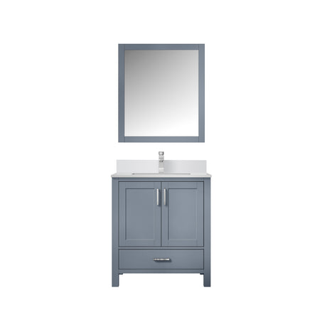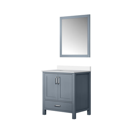 Jacques 30" Dark Grey Single Vanity, White Quartz Top, White Square Sink and 28" Mirror w/ Faucet