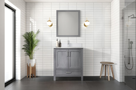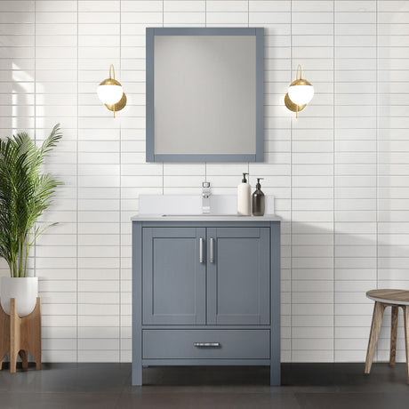 Jacques 30" Dark Grey Single Vanity, White Quartz Top, White Square Sink and 28" Mirror