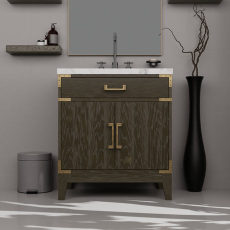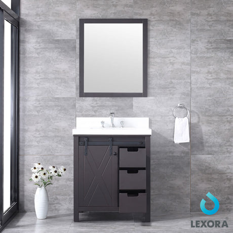 Marsyas 30" Brown Single Vanity, White Quartz Top, White Square Sink and 28" Mirror