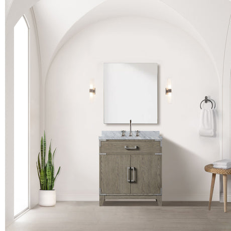 Marsyas 30" Ash Grey Single Vanity, White Quartz Top, White Square Sink and 28" Mirror w/ Faucet