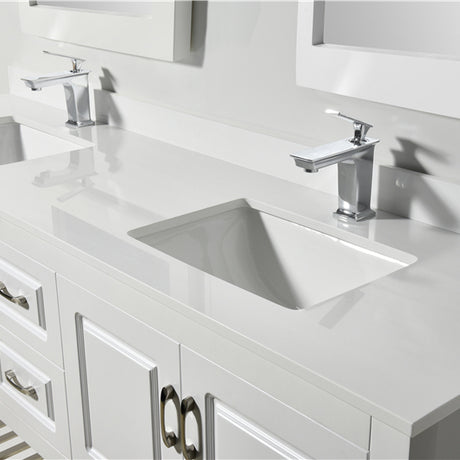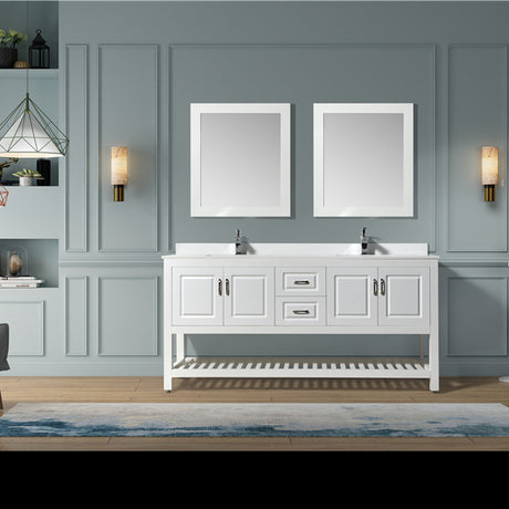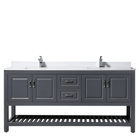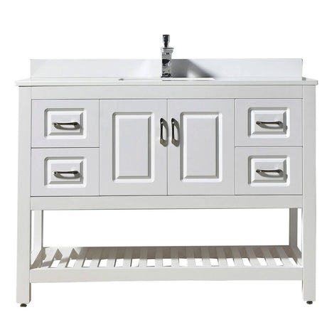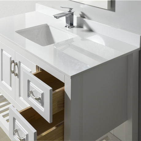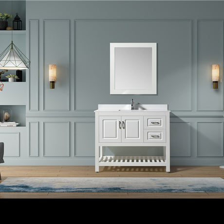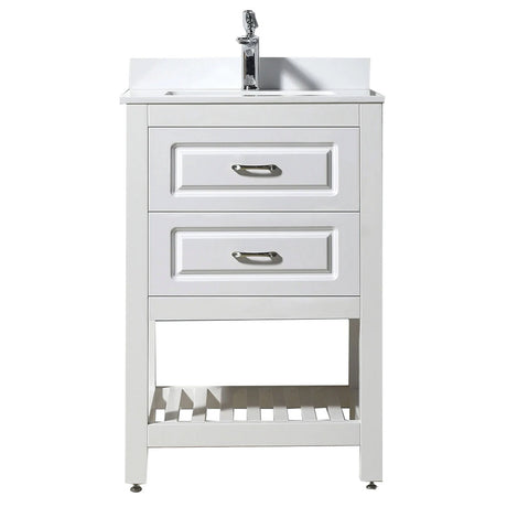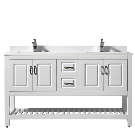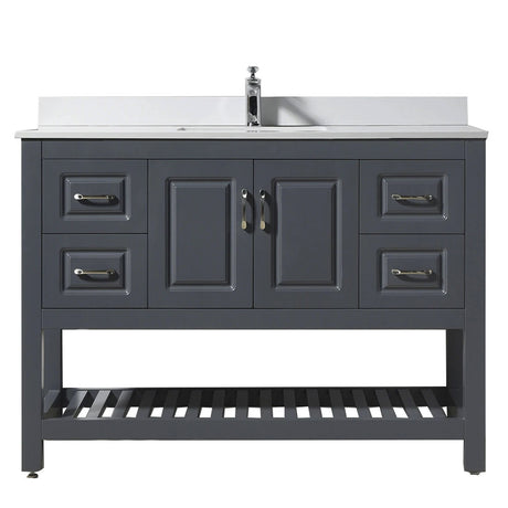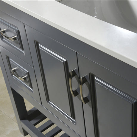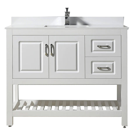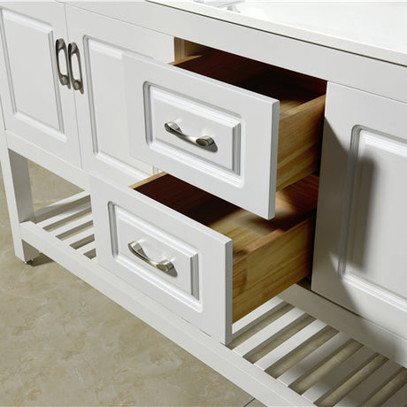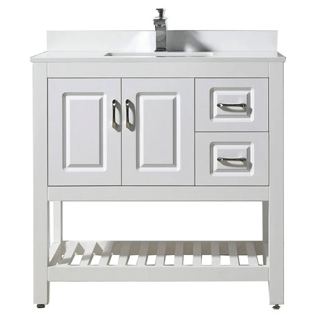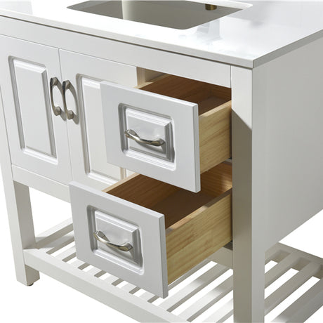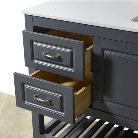 Modern Livia Freestanding Bathroom Vanity With Quartz Top, Sink, Drawers & Open Shelf Storage