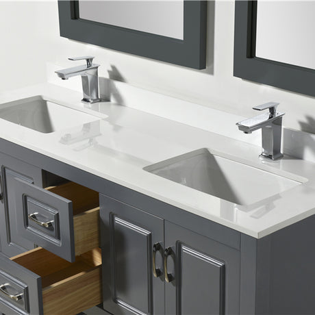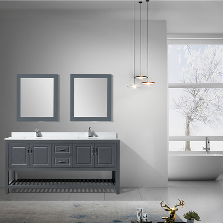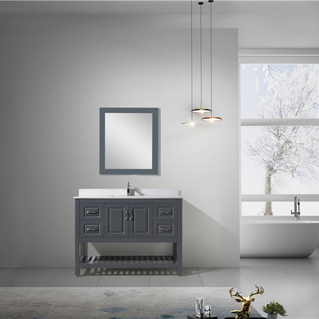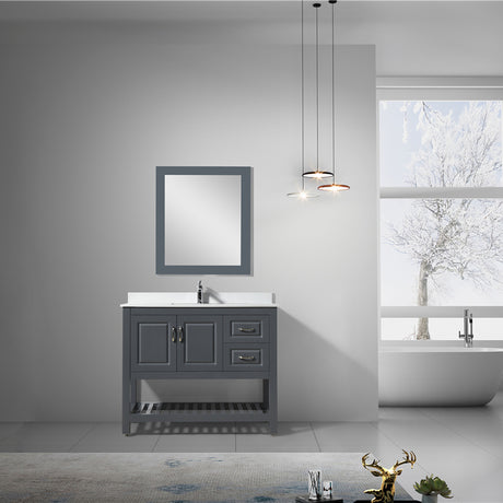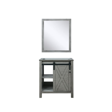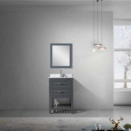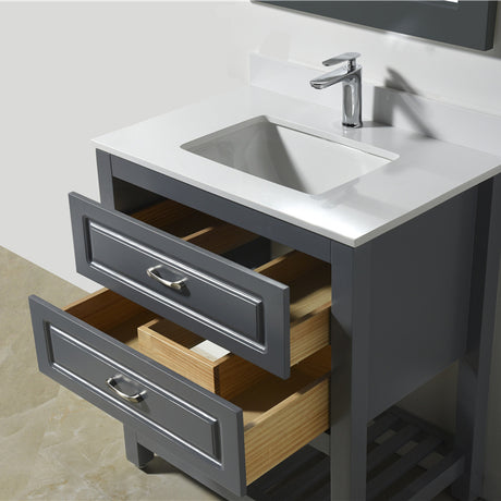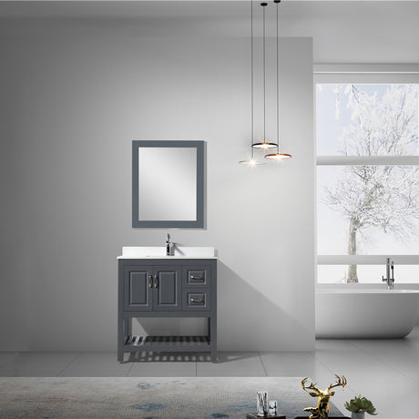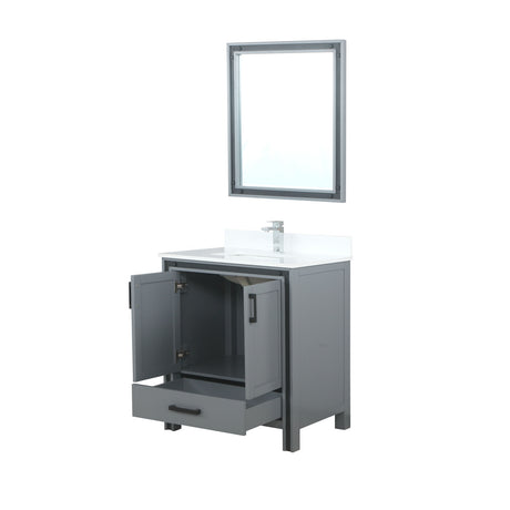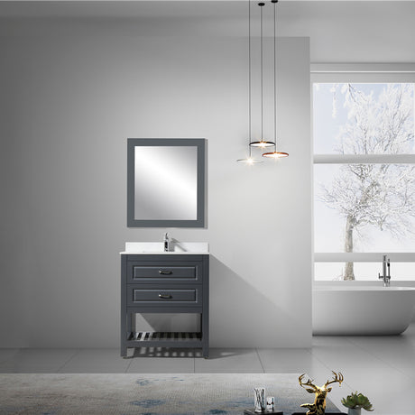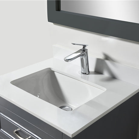Marsyas 30" Ash Grey Single Vanity, White Quartz Top, White Square Sink and 28" Mirror