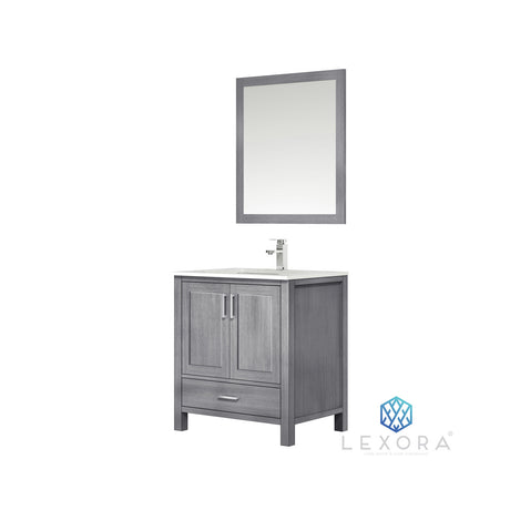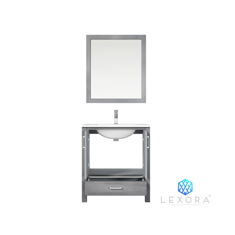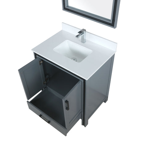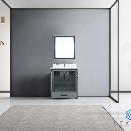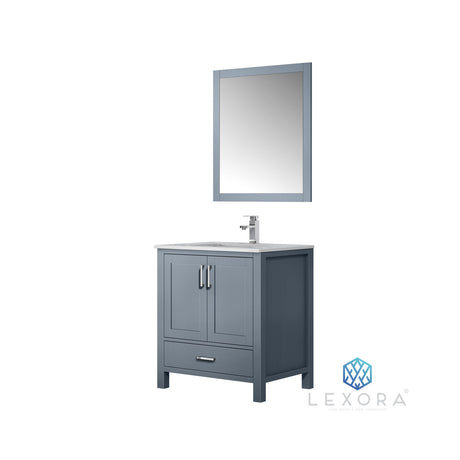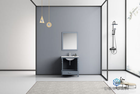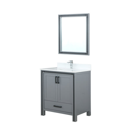 Ziva 30" Dark Grey Single Vanity, Cultured Marble Top, White Square Sink and 28" Mirror w/ Faucet