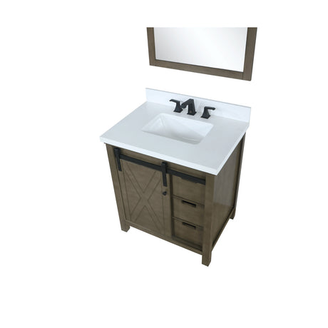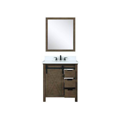 Marsyas 30" Rustic Brown Single Vanity, White Quartz Top, White Square Sink and 28" Mirror