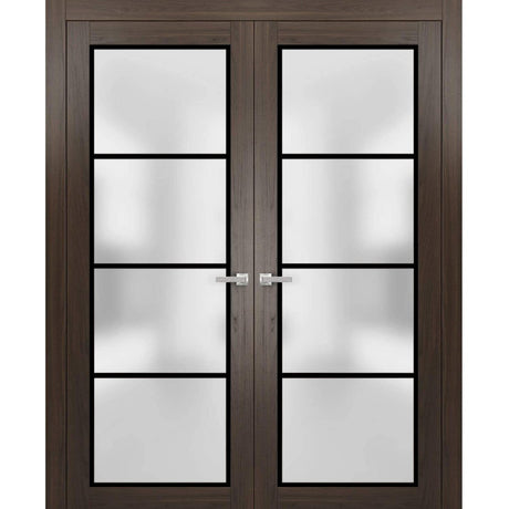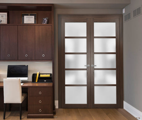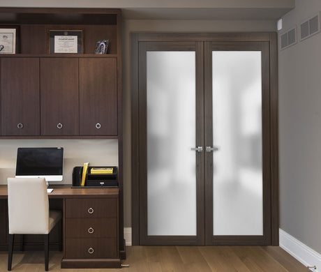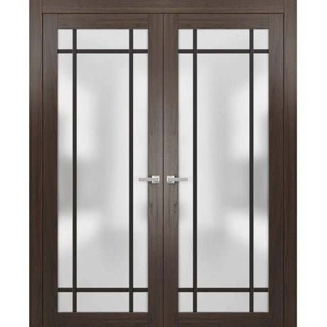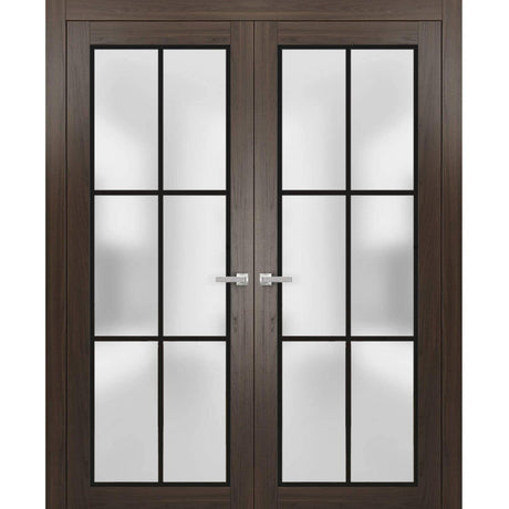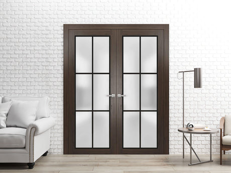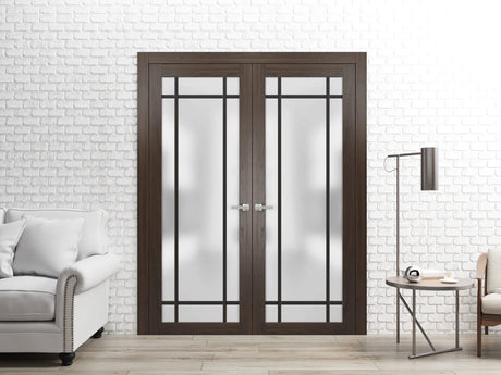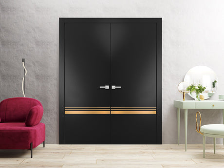Solid French Double Doors | Planum 2010 Matte Black | Wood Solid Panel Frame Trims | Closet Bedroom