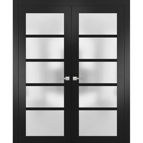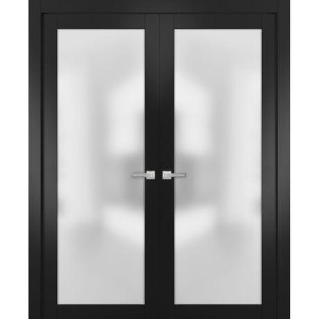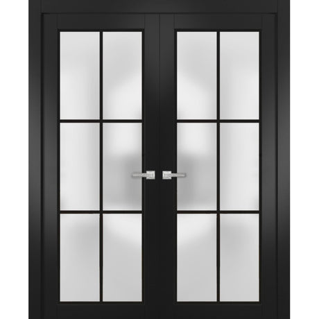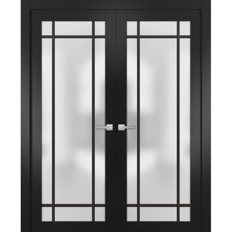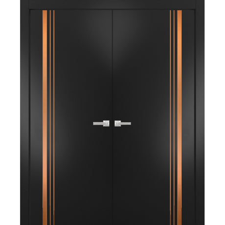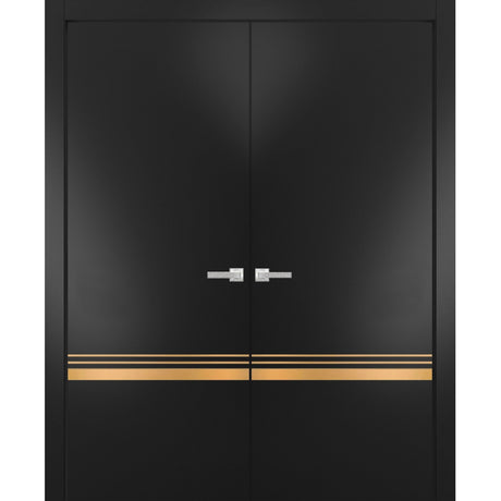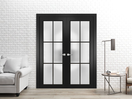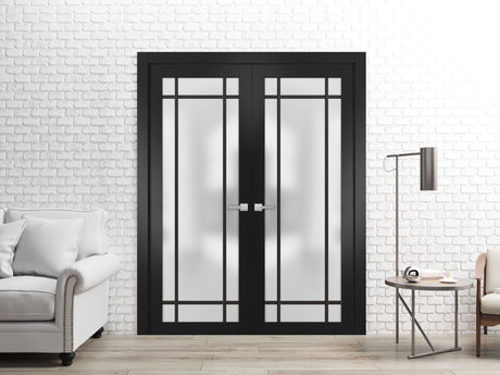 Solid French Double Doors | Planum 1010 Matte Black | Wood Solid Panel Frame Trims | Closet Bedroom