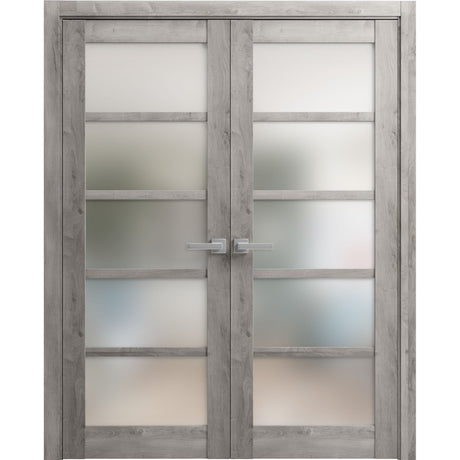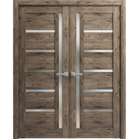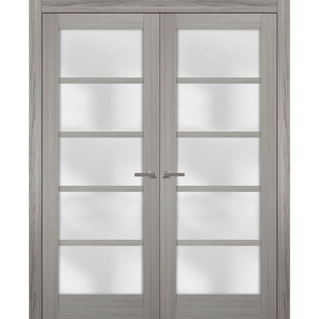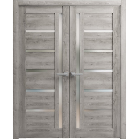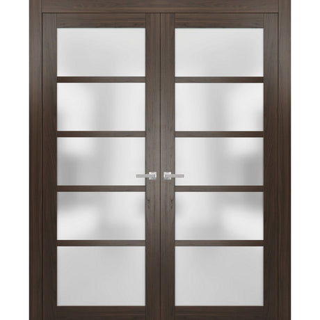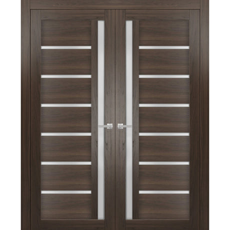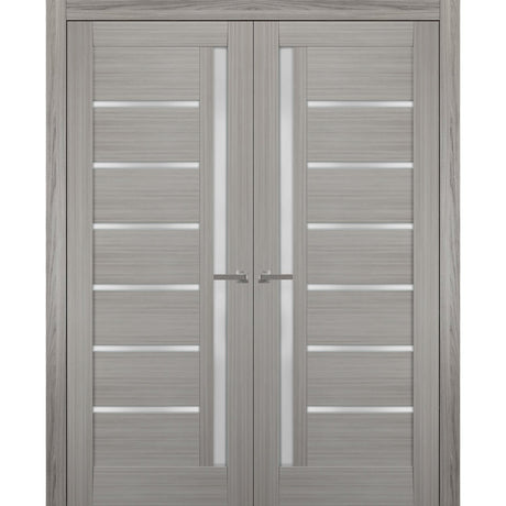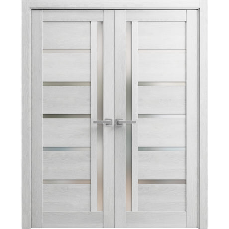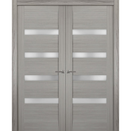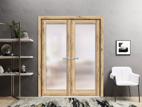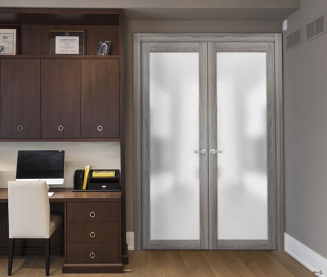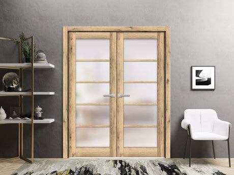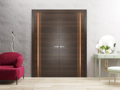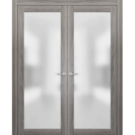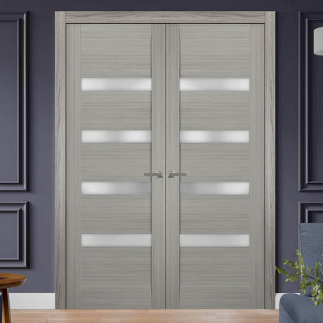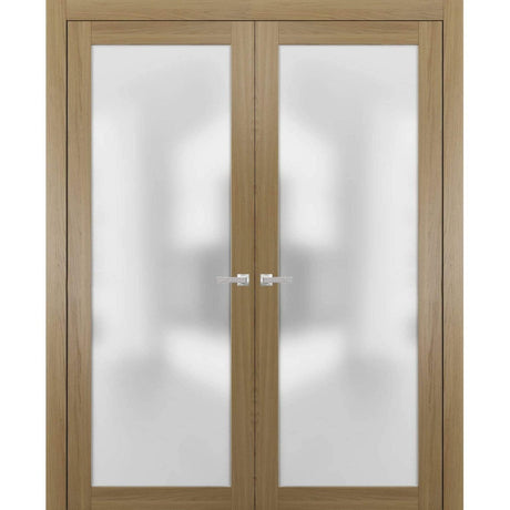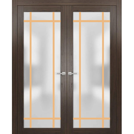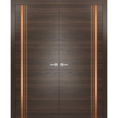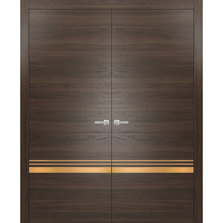 Planum 2102 Interior Double Closet Doors Honey Ash with Trims Frame Handles