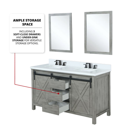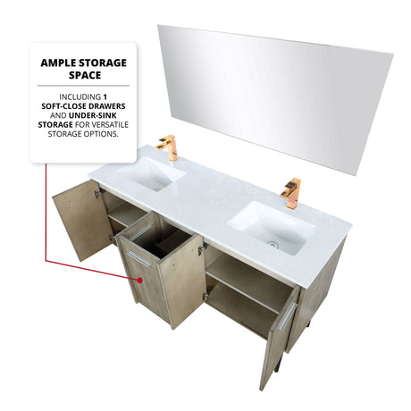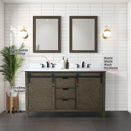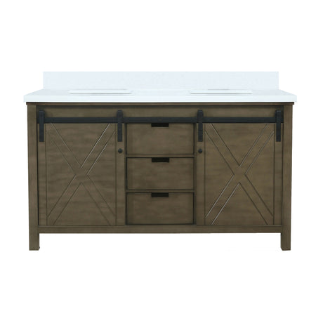Lancy 60 in. Rustic Acacia Freestanding Bathroom Vanity with White Quartz Top, and White Square Sink