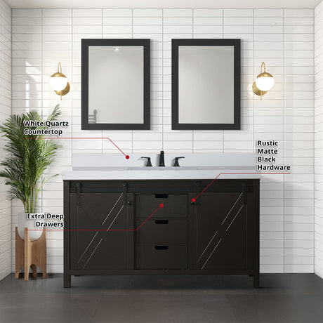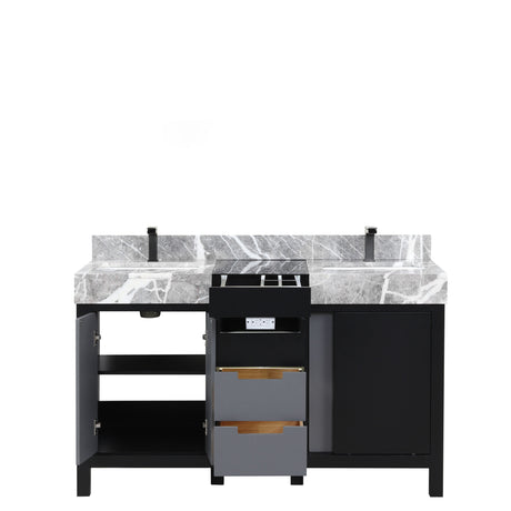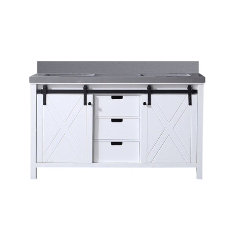 Marsyas 60 in. Freestanding Bathroom Vanity with White Quartz top, White Square Sink