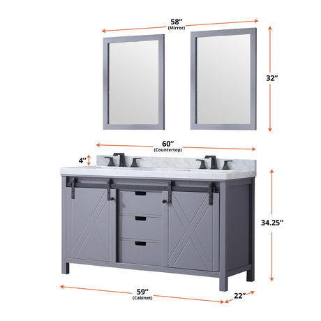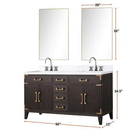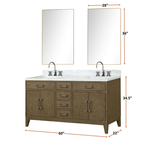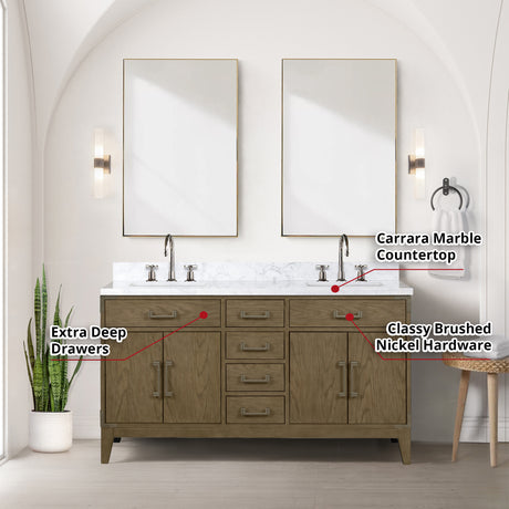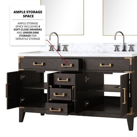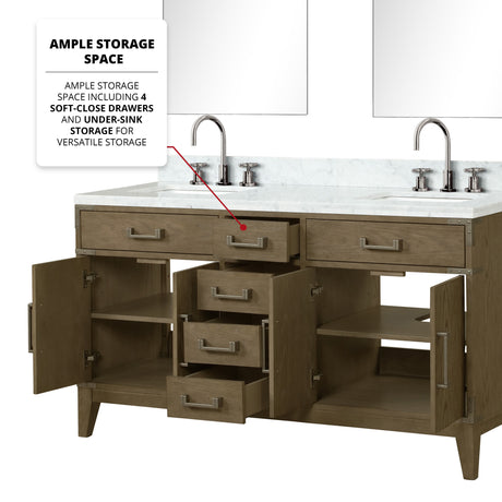 Laurel 60 in. Freestanding Bathroom Vanity with Carrara Marble Sink Top