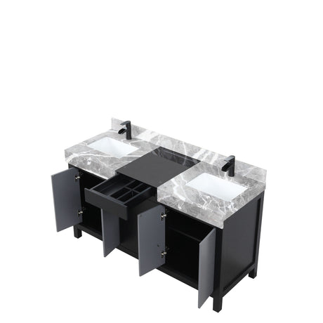 Dukes 60 in. Freestanding Bathroom Vanity with White Carrara Marble Top, White Square Sink
