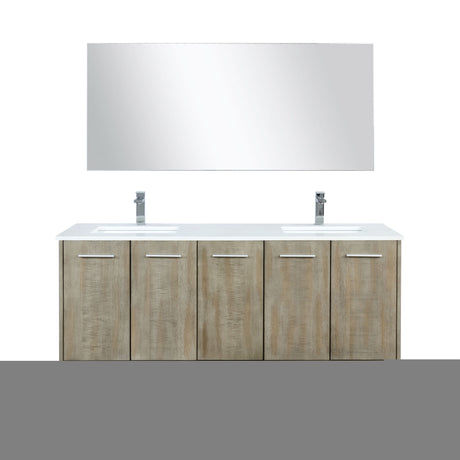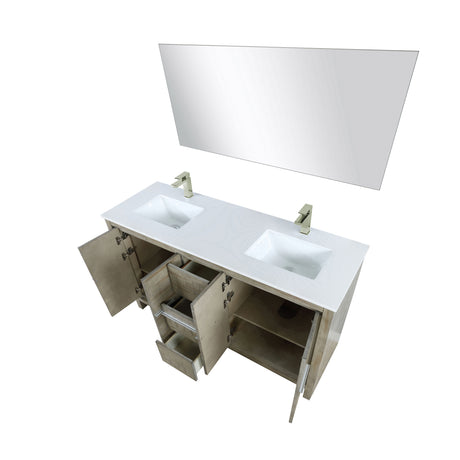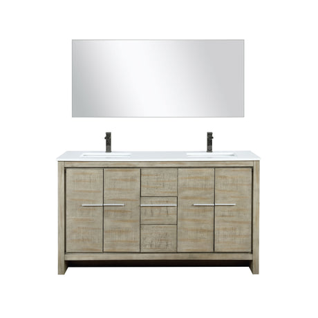 Jacques 60" Distressed Grey Double Vanity, White Quartz Top, White Square Sinks and 58" Mirror