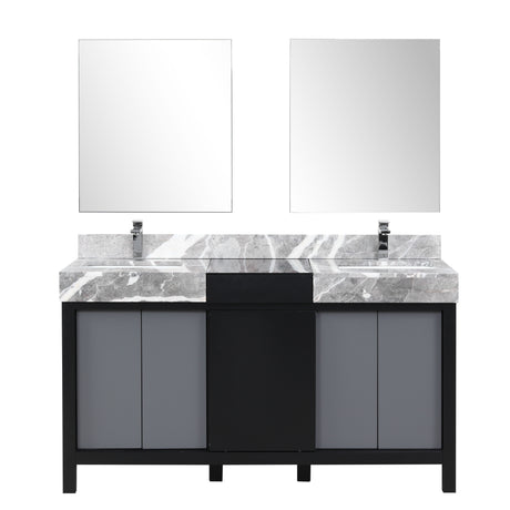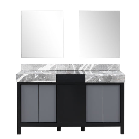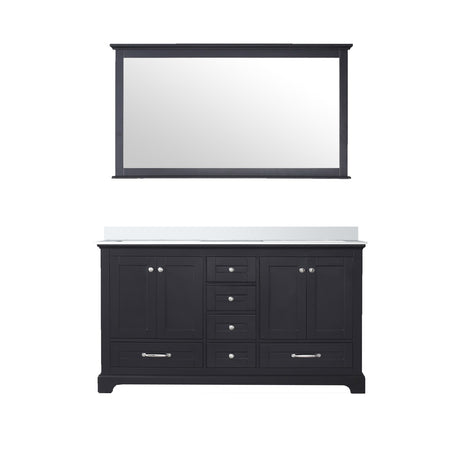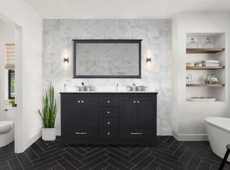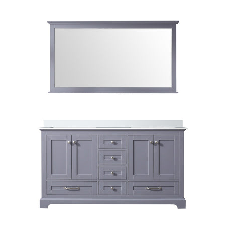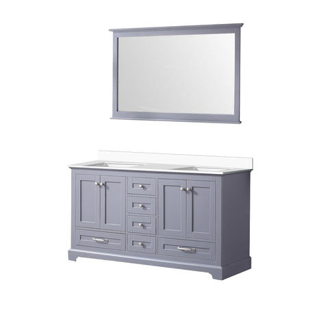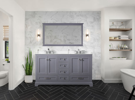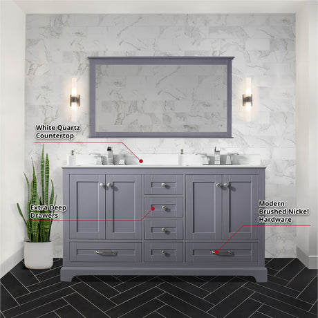 Dukes 60" Dark Grey Double Vanity, White Quartz Top, White Square Sinks and 58" Mirror