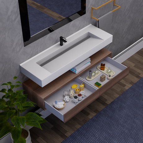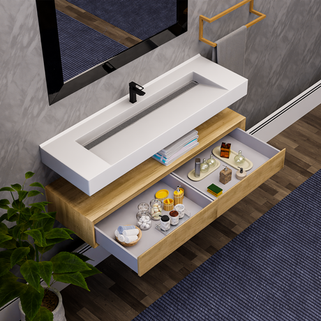 These vanities are made from durable materials such as solid wood, MDF, or plywood, often with high-quality finishes to ensure longevity. -