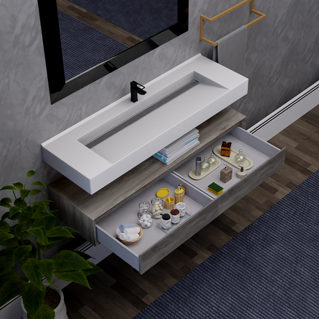 Alysa 60" Floating Bathroom Vanity Set with FLX16 Acrylic Single Sink Top