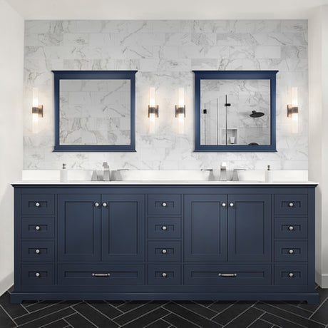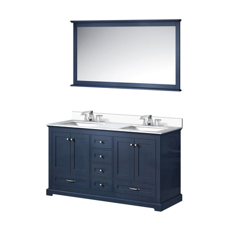 Dukes 60" Navy Blue Double Vanity, White Quartz Top, White Square Sinks and 58" Mirror w/ Faucets