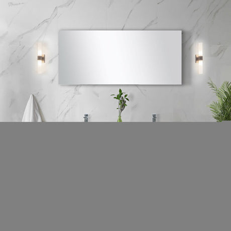 Jacques 60" White Double Vanity, White Quartz Top, White Square Sinks and 58" Mirror