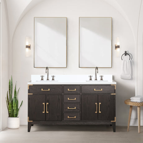 Abbey 60 in W x 22 in D Brown Oak Double Bath Vanity