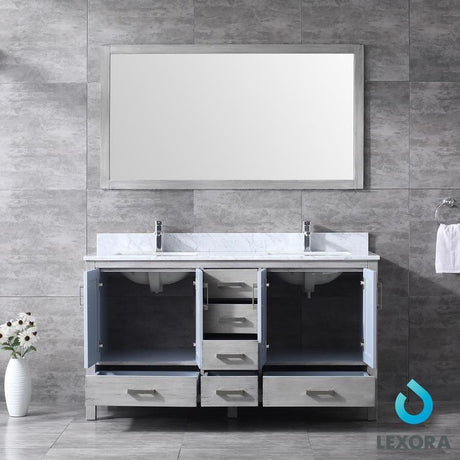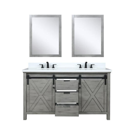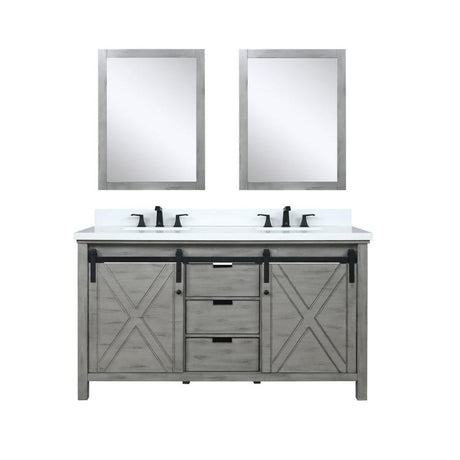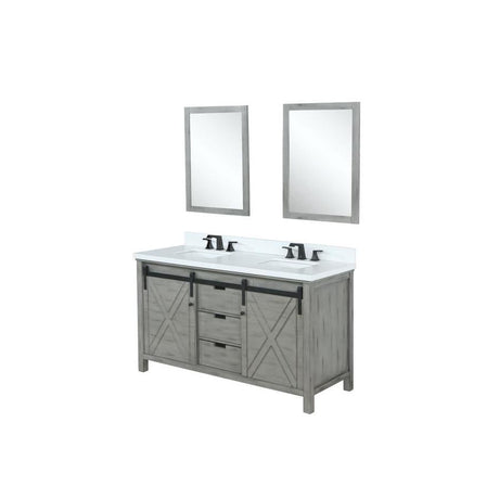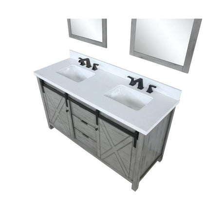 Marsyas 60" Ash Grey Double Vanity, White Quartz Top, White Square Sinks and 24" Mirrors w/ Faucets