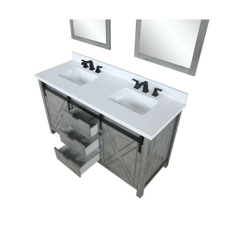 Marsyas 60" White Double Vanity, Grey Quartz Top, White Square Sinks and 24" Mirrors w/ Faucets