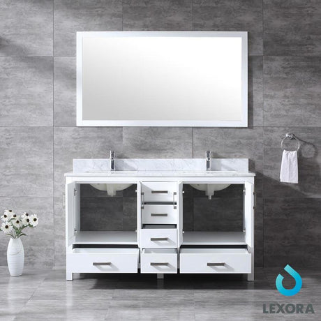 Ziva 60" White Double Vanity, Cultured Marble Top, White Square Sink and 22" Mirrors w/ Faucet