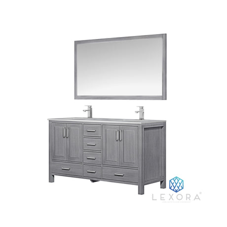 Marsyas 60" Ash Grey Double Vanity, White Quartz Top, White Square Sinks and 24" Mirrors