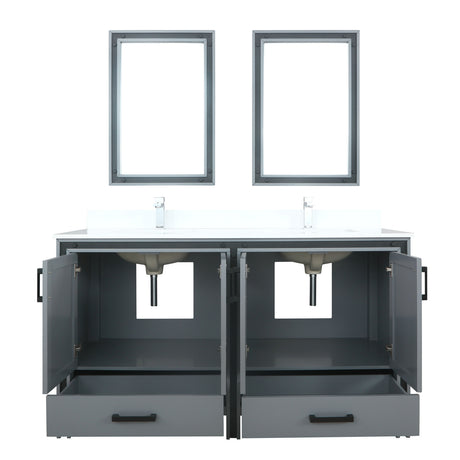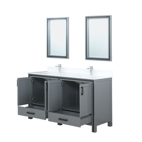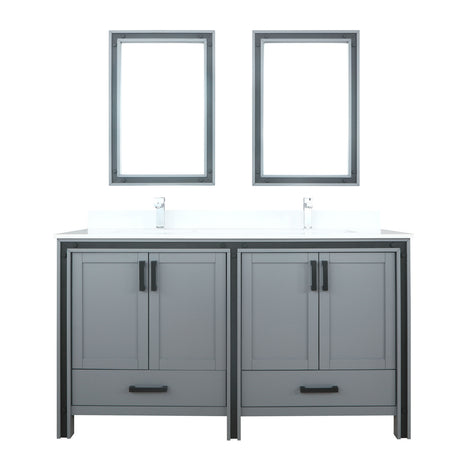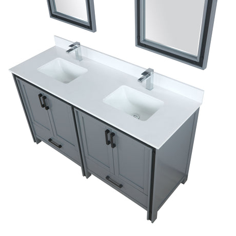 Ziva 60" Dark Grey Double Vanity, Cultured Marble Top, White Square Sink and 22" Mirrors w/ Faucet