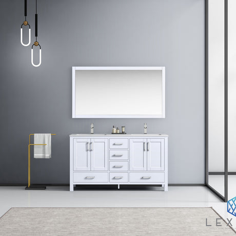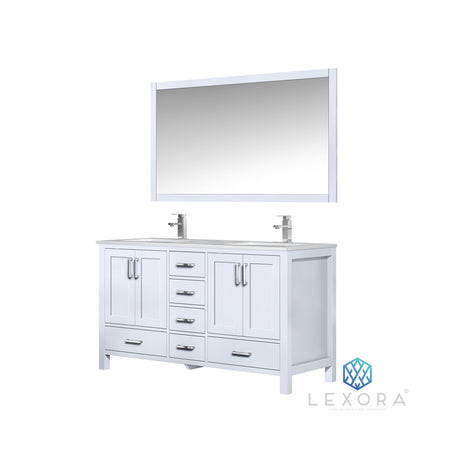 Jacques 60" White Double Vanity, no Top and 58" Mirror