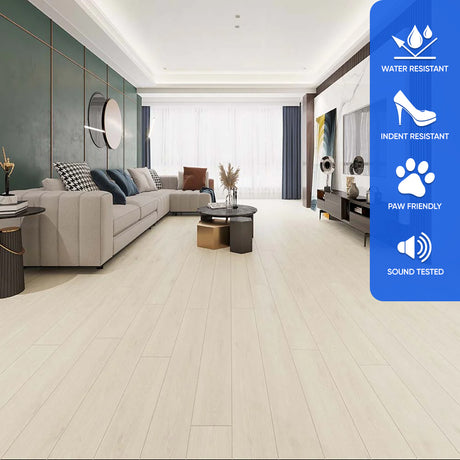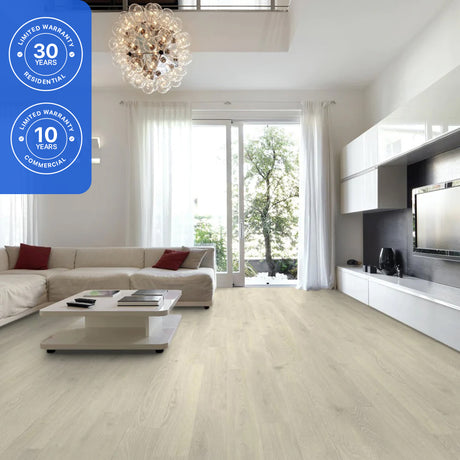 An 8-12 mil wear layer protects against foot traffic and minor impacts.