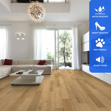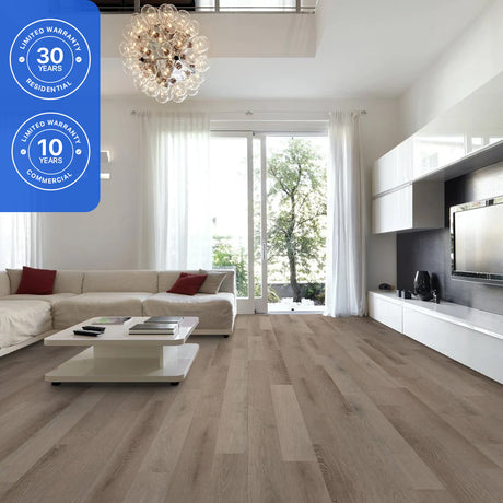 This flooring offers dependable performance for active homes and light commercial applications.