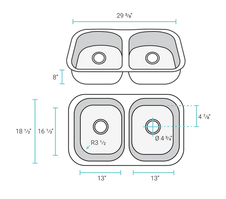 Toulouse 29 x 18 Stainless Steel, Dual Basin, Undermount Kitchen Sink