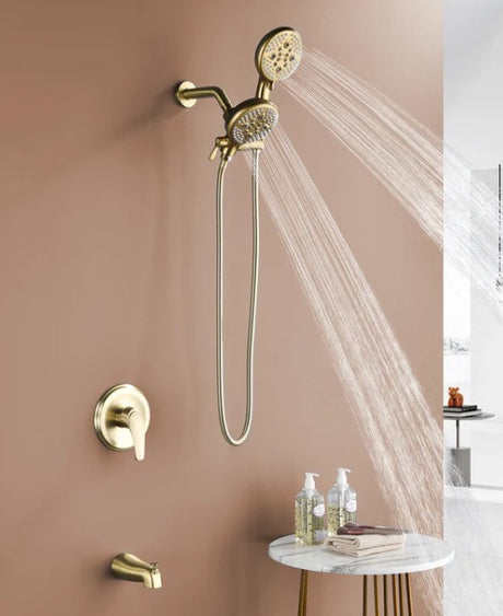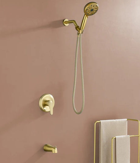 Wellfor Brushed Gold 10-Setting Handheld Showerhead and Bathtub Faucet Set - 88047BG