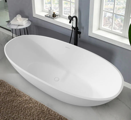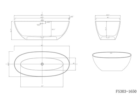 Wellfor - 65" Stone Resin Solid Surface Flat Bottom Freestanding Bathtub - FS303-1650