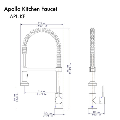 ZLINE Apollo Pull Down Spring Kitchen Faucet in Polished Gold (APL-KF-PG)