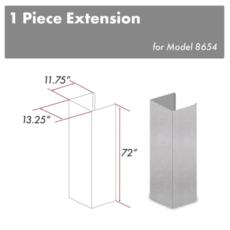 ZLINE 72 in. Satin Stainless Steel Extended Chimney and Crown (8654-E)