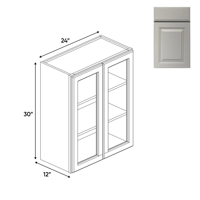 Avalon Ashen - 24 Inch Double Glass Door Wall Cabinet - 24" Width x 30" Height x 12" Depth