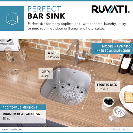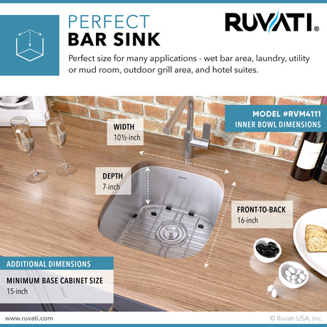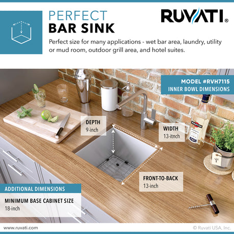 Undermount 16 Gauge Tight Radius Bar Prep Sink Stainless Steel Single Bowl
