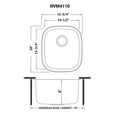 15 x 15 inch Workstation Drop-in Topmount Bar Prep RV Sink 16 Gauge Stainless Steel