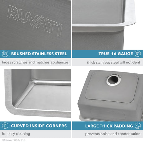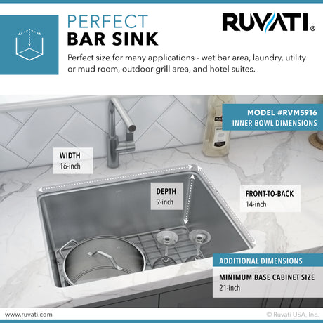 16 x 18 inch Undermount Bar Prep Tight Radius 16 Gauge Kitchen Sink Stainless Steel Single Bowl
