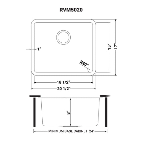 21 x 20 inch RV Workstation Drop-in Topmount Bar Prep Kitchen Sink 16 Gauge Stainless Steel