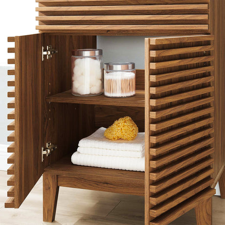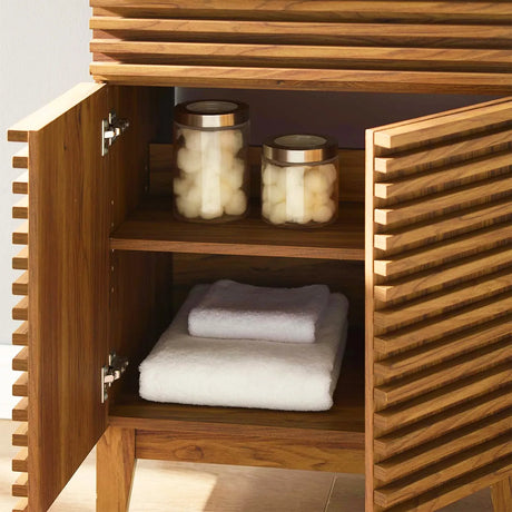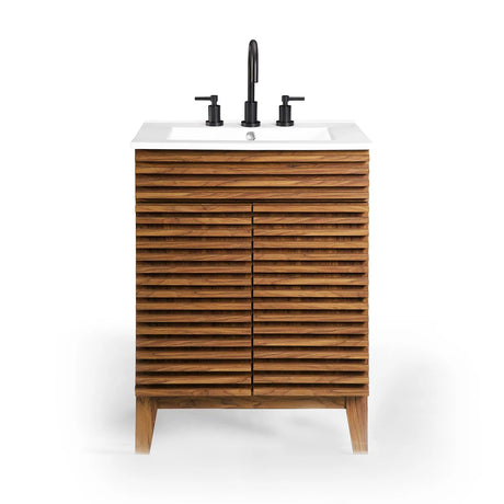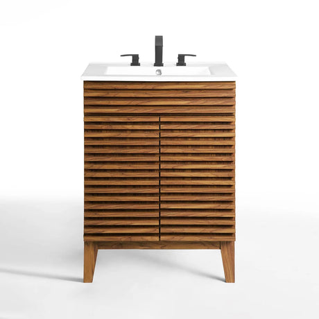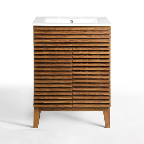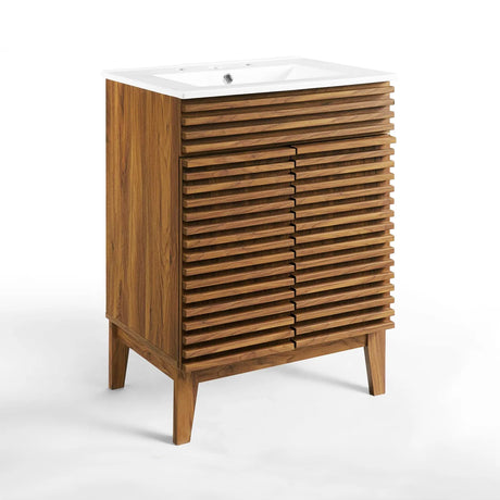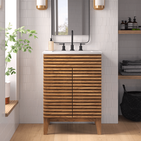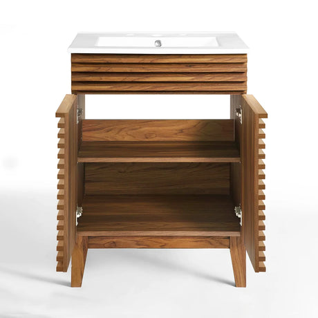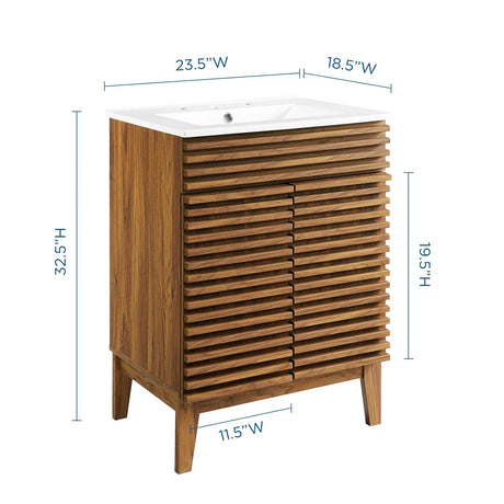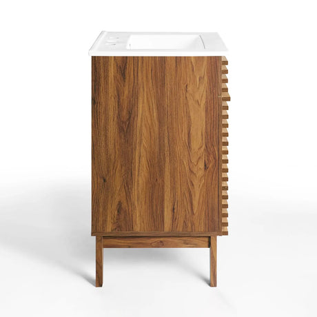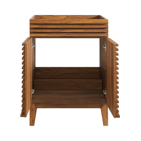 Rosie Mid Century 24 Inch Walnut Bathroom Vanity Cabinet With Soft 2 Doors (Sink Basin Not Included)