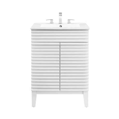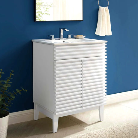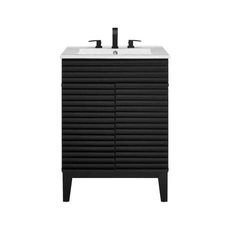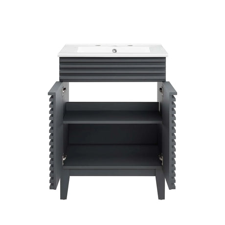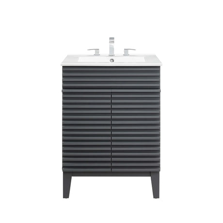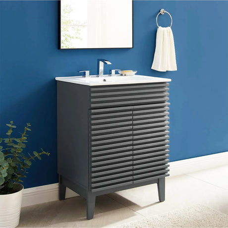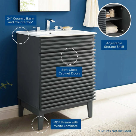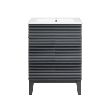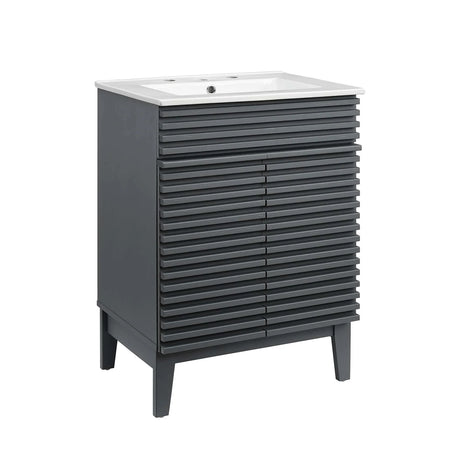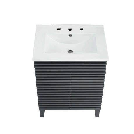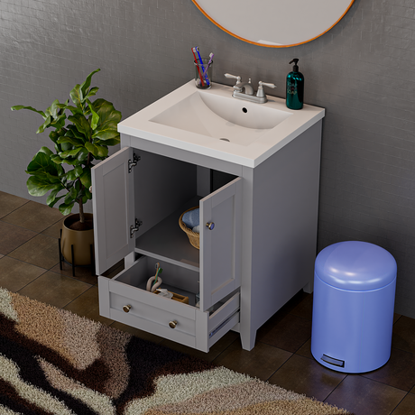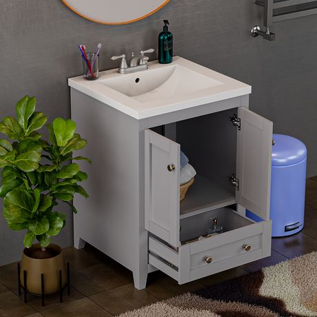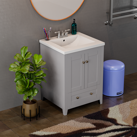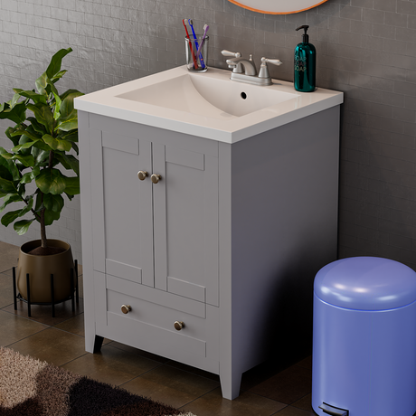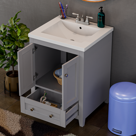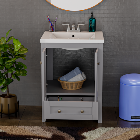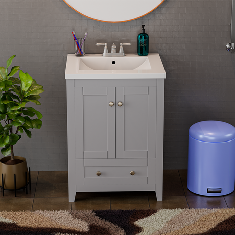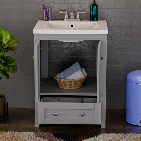 Adak 24 In. Gray Freestanding Bathroom Vanity with Porcelain Sink Top