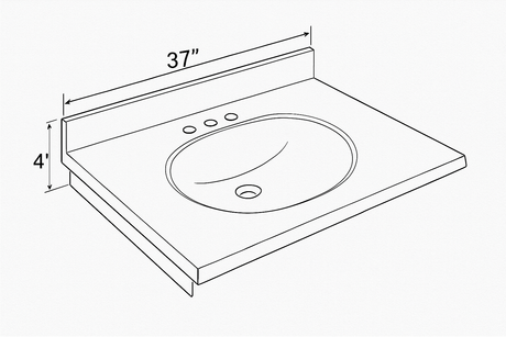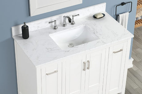 37 Inch Cultured Marble Vanity Top in White with White Sink