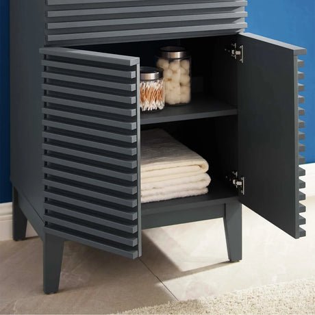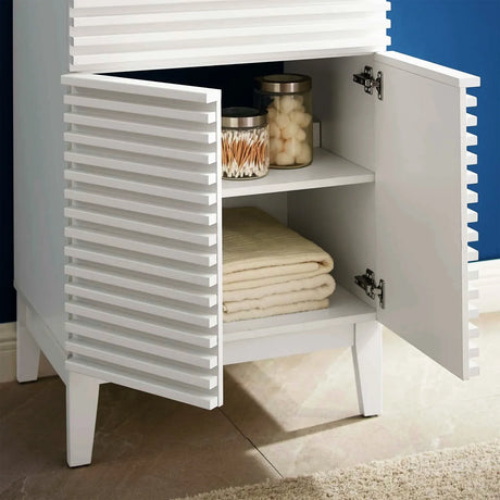 Liyan Elegant Modern Freestanding Bathroom Linen Side Cabinet With Doors & Open Shelves Storage