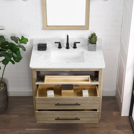 Encino 30-in Vanity Combo Light Oak with Carrara White Engineered Stone Top